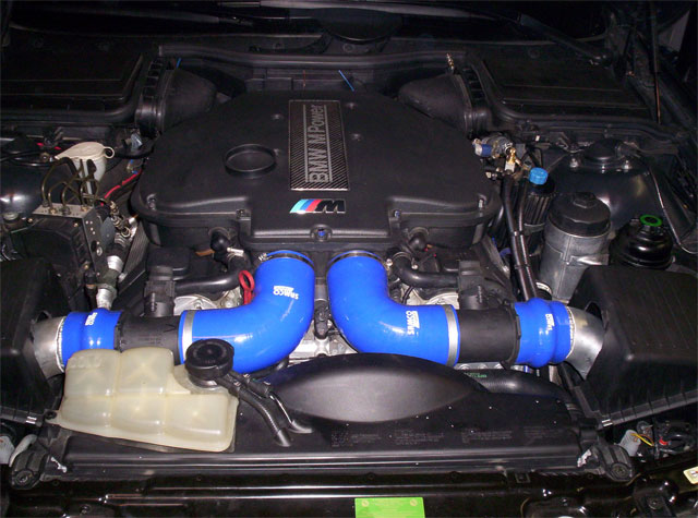 BMW M5 kompressorinst med blåslangar skall bytas mot svart för diskretare look